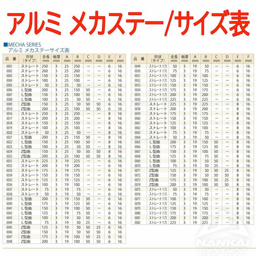 他の画像を見る アイデア次第で使い方いろいろ!汎用タイプアルミステー NANKAI アルミメカステー Z型曲 全長150×幅19mm (Φ6mm×16mm) 0046 南海部品 販売価格 ¥ 550 税込 アイデア次第で使い方いろいろ!汎用タイプアルミステー カートに入れる お気に入りに登録する メール便可