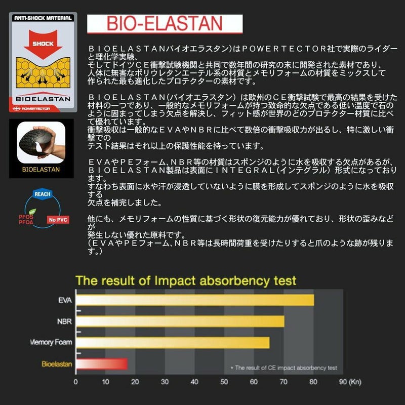 ●BIO-ELASTAN:ドイツCE衝撃試験機関との共同開発による最も進化したプロテクター素材です。