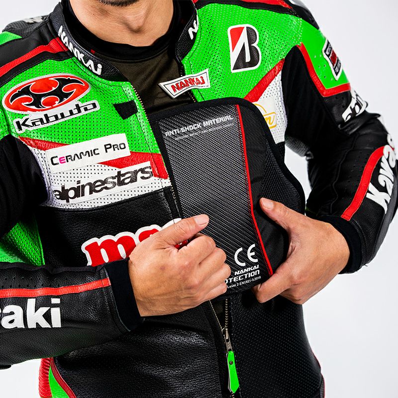 レーシングスーツからストリートジャケットまで使用可能なワンピースタイプチェスト プロテクター!