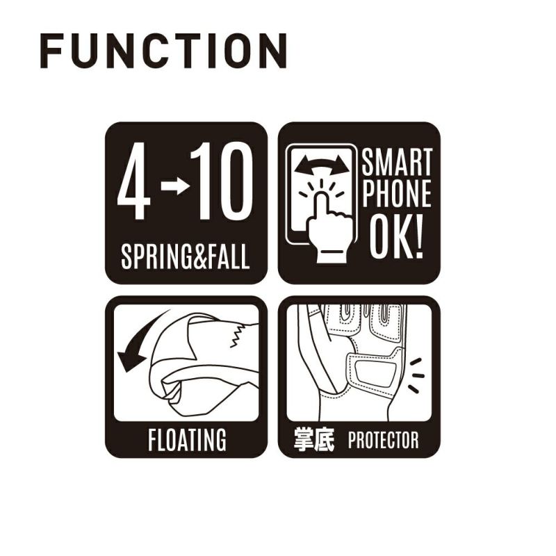 ・ 掌側には濡れてもグリップ感が変わらず耐久性に優れた「アマーラ」を全面に採用。