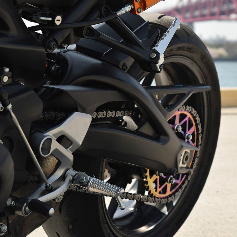 ミニバイク用タフライトスチールスプロケットは、強度に優れる鋼鉄材料に大胆な肉抜き加工を施し、色鮮やかな特殊メッキ加工で注目度抜群!