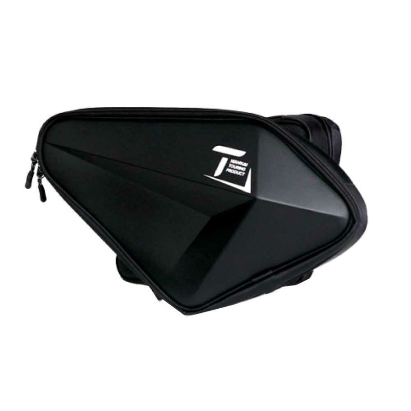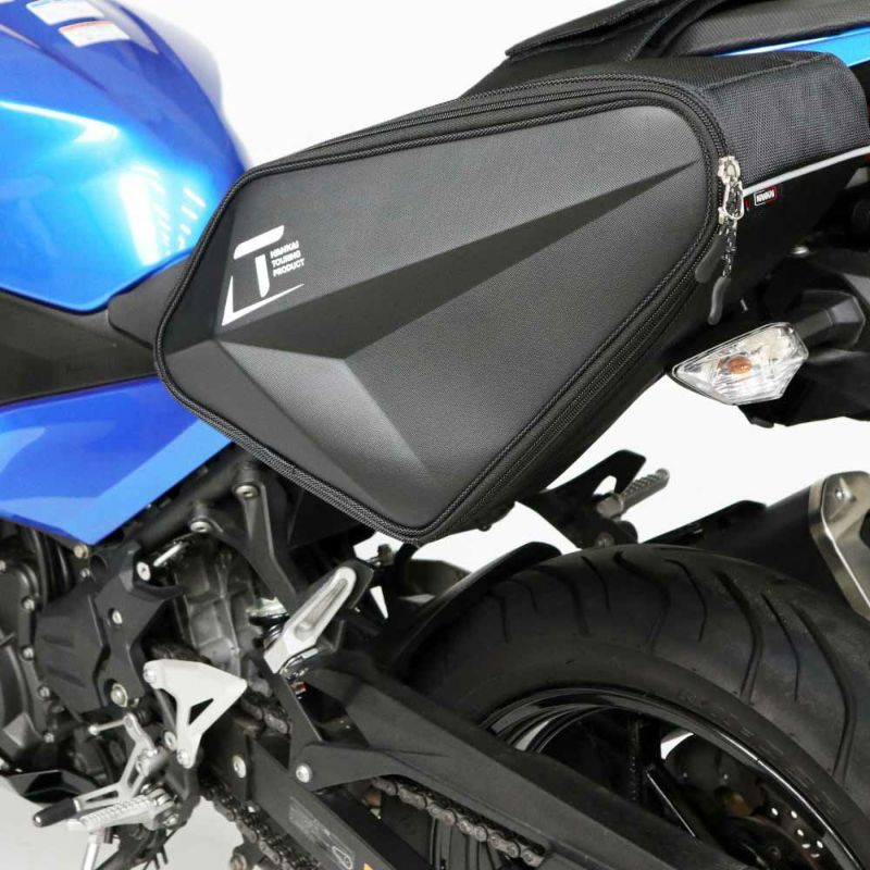- バッグ下部のベルトを車体に締めてバタつきを防止。