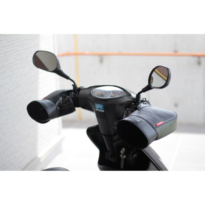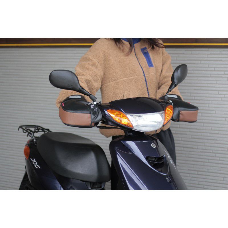 カバーを差し込んで、ミラーに縛るだけの簡単装着! 大久保製作所 バイク用 ハンドルカバー F1SM-3650