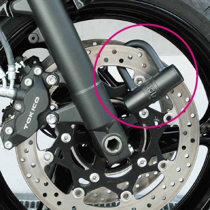 ●付属のUロックとアシストリングで前後輪を施錠したり、離れた固定物との施錠が可能。