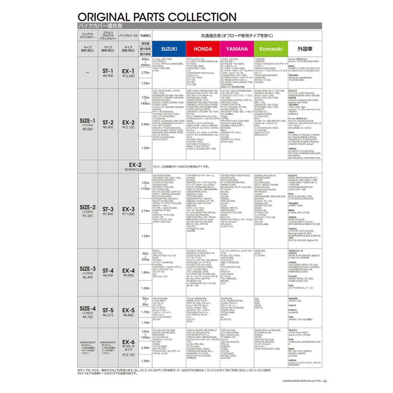 【バイクカバー適合表】