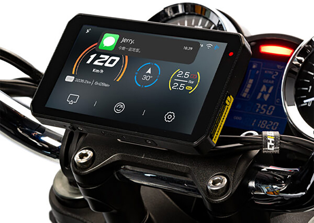 ナビゲーション・音楽再生・通話・車両情報などを一台で操作でき、長距離ツーリングから日常のライディングまで快適にサポートします。