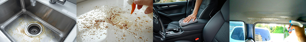 A. キッチンまわり(油汚れ・手アカ)、リビング(家具・家電)、車内、窓サッシ、トイレ・洗面所、壁、フローリング、子ども用品、ペット用品など、ほとんどの場所に使用できます。