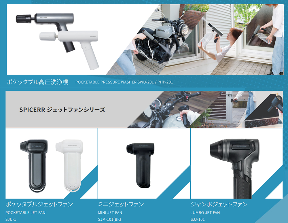 油汚れ・手アカ・皮脂を“水100%成分”で安全に分解し、素材を傷めず汚れを浮かせる。 - ジェットファン:吹く