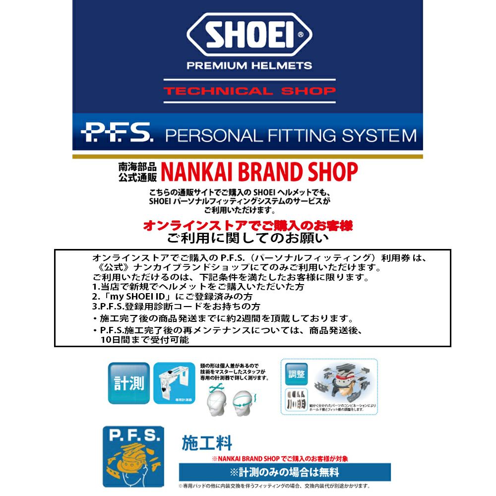 他の画像を見る ヘルメット P.F.S.(パーソナルフィッティング)利用券 SHOEI ショウエイ ヘルメット P.F.S.(パーソナルフィッティング)利用券 ※ポイント3300円分付与 販売価格 ¥ 6,600 税込 詳細を見る お気に入りに登録する SHOEI